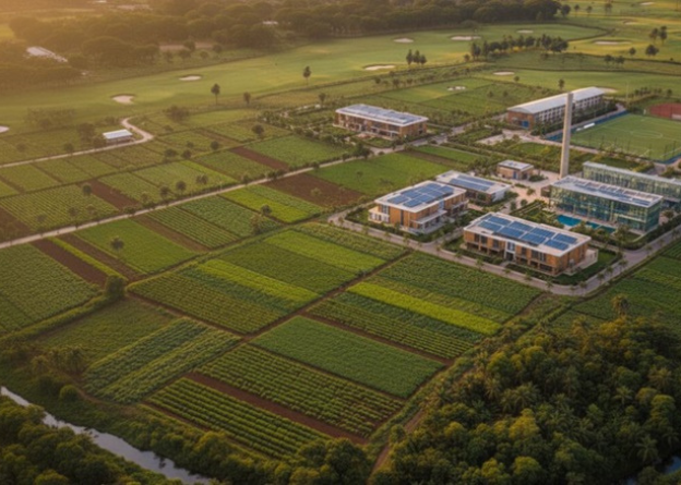 Solar Energy Farm – to power the city sustainably. Water Purification Plant – ensuring clean water supply. Smart ICT Network – city-wide Wi-Fi, digital surveillance, and data center. Waste-to-Energy Facility – using bio-waste from agro-industries.